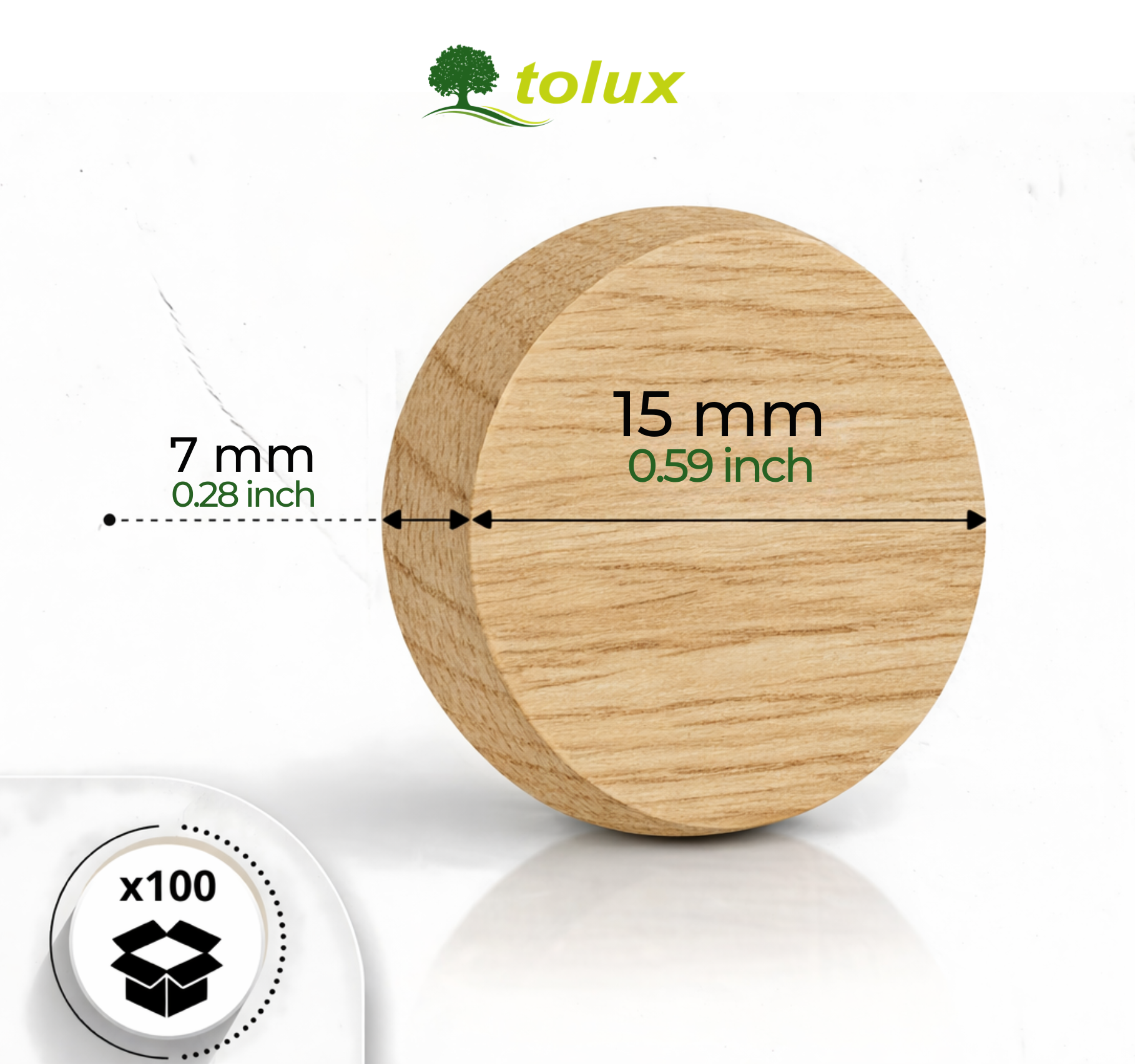 FLEKI DĄB fi 15 mm DREWNIANE, FLEKI Z DESKI 100 szt.