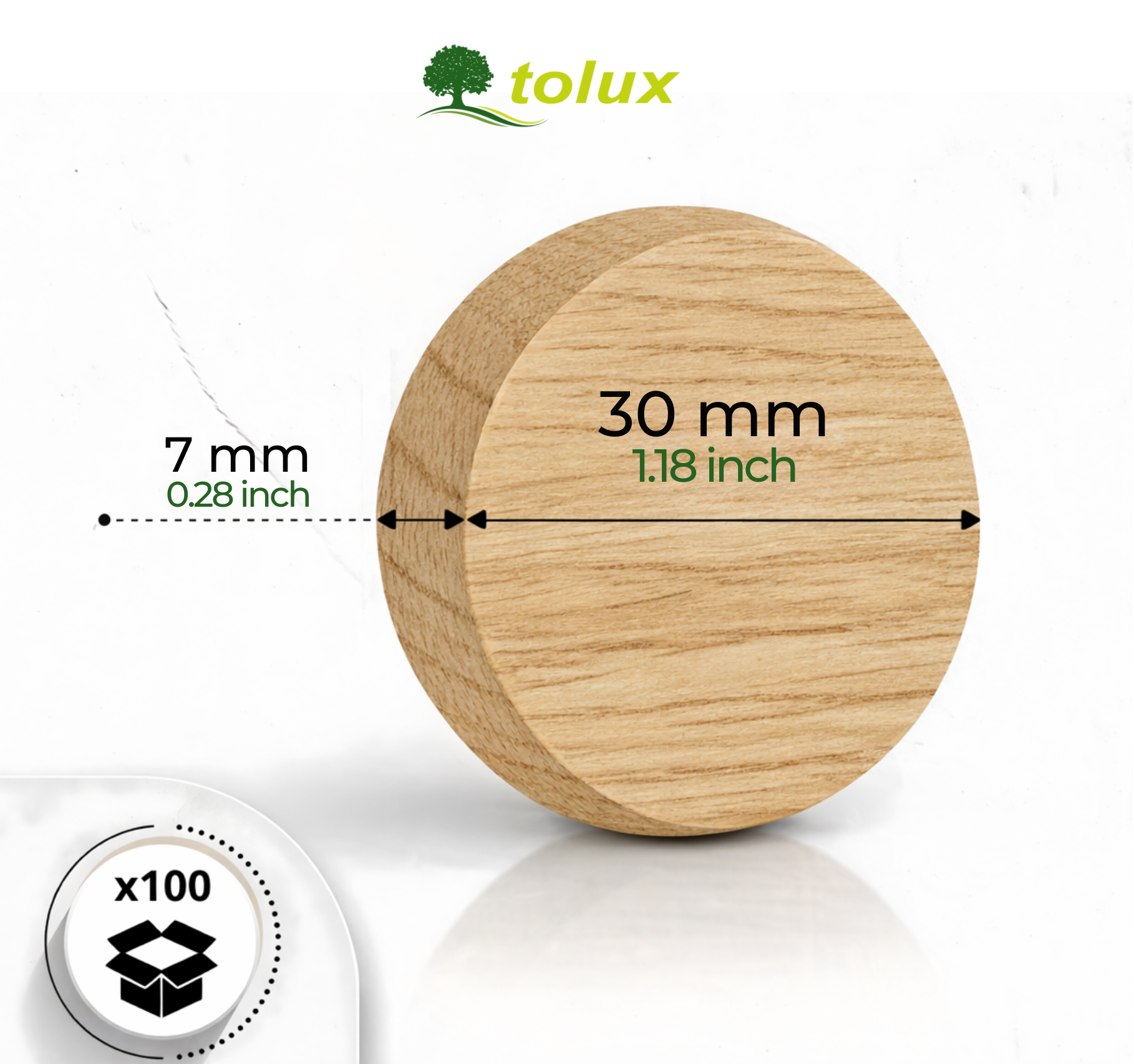 FLEKI DĄB fi 30 mm DREWNIANE, FLEKI Z DESKI 100 szt.