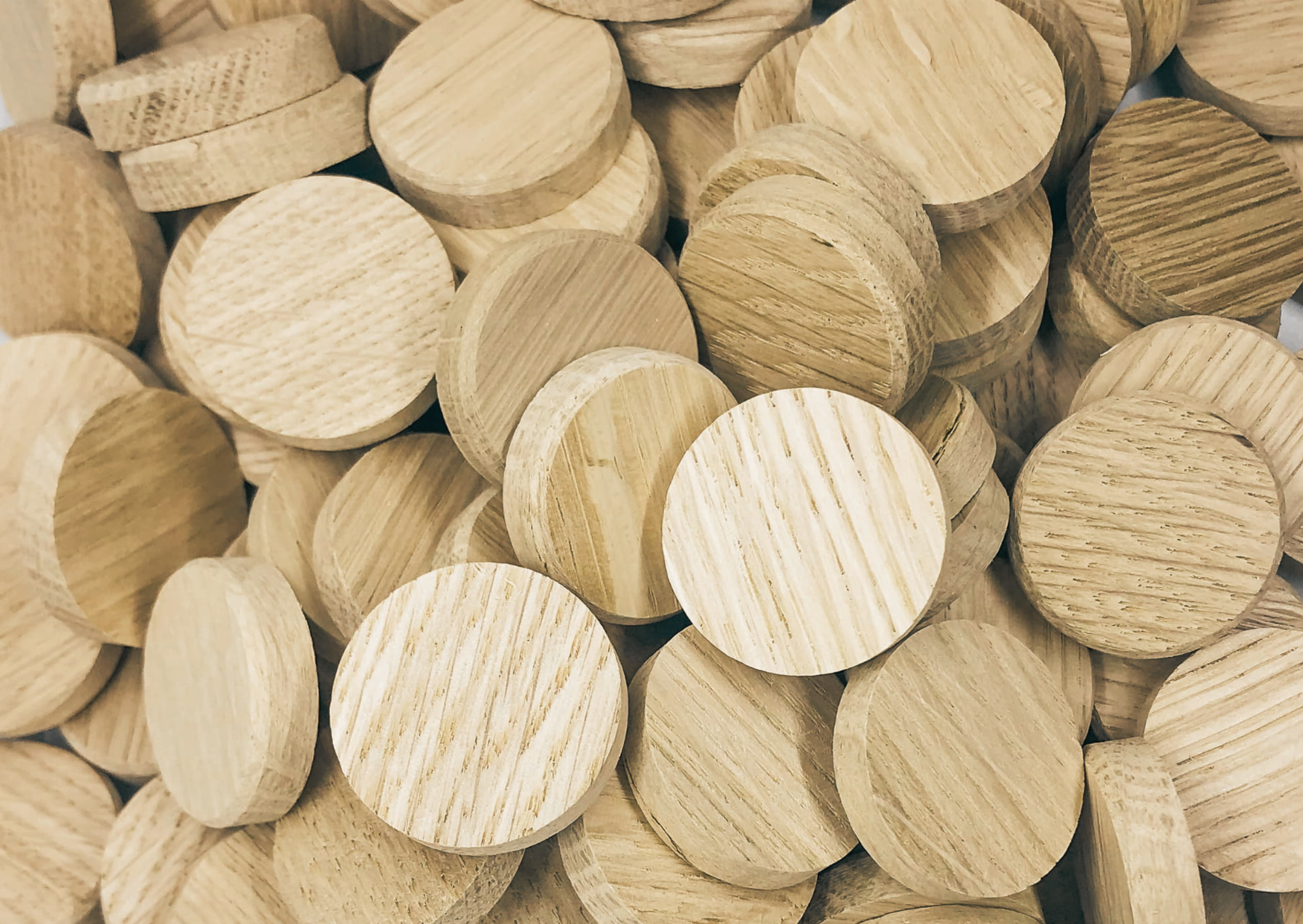 Solidnie i precyzyjnie wykonane dębowe fleki z deski o średnicy 30 mm