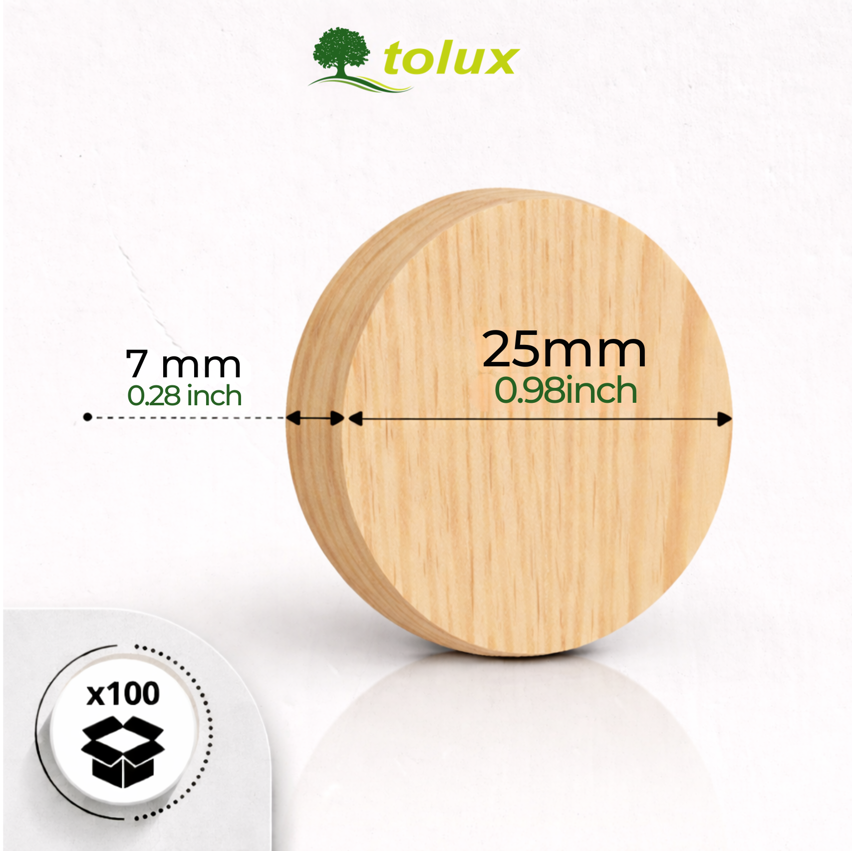 FLEKI JESION fi 25 mm DREWNIANE, FLEKI Z DESKI 100 szt.